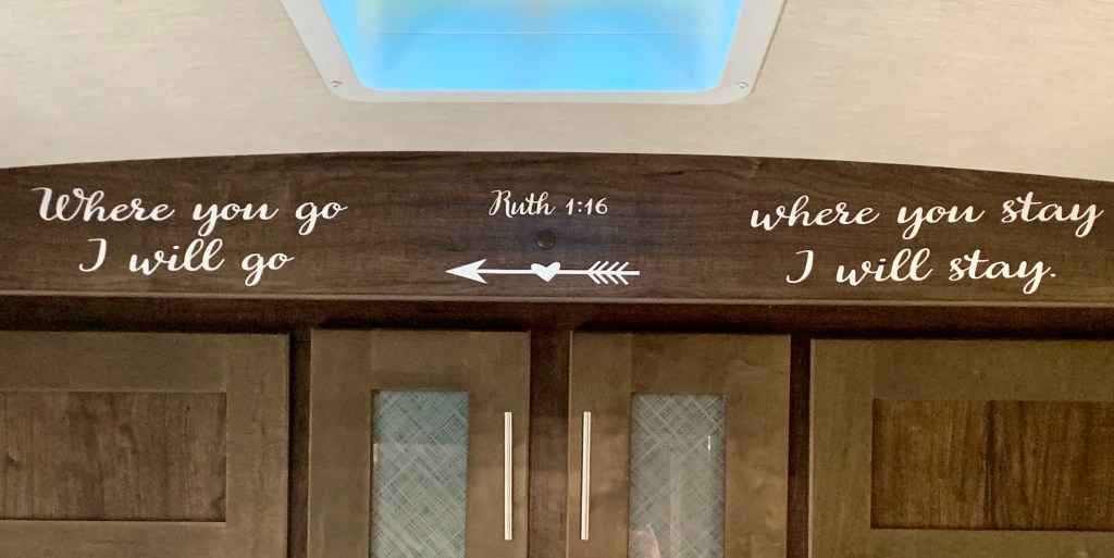 We headed back to the KOA before dinner. Josh went to fill our propane tanks, so I headed into the camper. As soon as I shut the door behind me I threw my hands in the air, with tears in my eyes, and said “GOD, WHAT ARE YOU TRYING TO TELL ME?!? I don’t know what you are doing, but I’m here, I’m listening. ”Then as I turned around, my eyes fixed onto a scripture that I had put in our camper: “Where you go I will go. Where you stay, I will stay” (Ruth 1:16). So I just agreed with that scripture, dried my eyes and took a deep breath. I had peace that surpassed all understanding. Wherever He was leading us, we will go. It became that complicated and simple all at once.